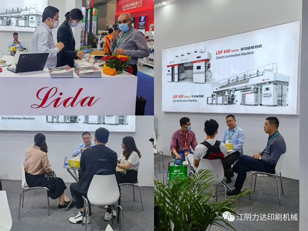 在“碳中和”、“碳達(dá)峰”、“限塑令”升級(jí)下的橡塑行業(yè),發(fā)展循環(huán)經(jīng)濟(jì)、節(jié)能減排等正當(dāng)其時(shí)。這不僅僅是各界熱議的話(huà)題與挑戰(zhàn),更暗藏著巨大的新市場(chǎng)、新機(jī)遇,眾多新能源、5G、新材料等企業(yè)聞?dòng)嵍鴣?lái)。開(kāi)展四天來(lái),許多觀眾紛紛來(lái)到展臺(tái)進(jìn)行商務(wù)洽談,其中公司最新研發(fā)的LDF 450型多功能復(fù)合機(jī)以及LGF 450型干式復(fù)合機(jī)收到了客戶(hù)的廣泛關(guān)注,咨詢(xún)客商不斷。該機(jī)型最高機(jī)械速度為450m/min,支持無(wú)溶劑、網(wǎng)線(xiàn)輥、半柔版、定點(diǎn)涂布等多種涂布方式,實(shí)現(xiàn)一機(jī)多用,為客戶(hù)節(jié)約更多的成本,實(shí)現(xiàn)更高的經(jīng)濟(jì)效益。